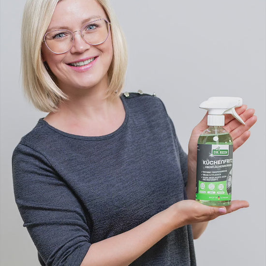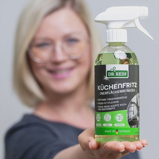 Der Dr. Rein Küchenfritz reinigt glatte Oberflächen aller Art: Matte oder glänzende Küchenfronten, Ceranfelder, Regale und Spiegelflächen. Einfach einsprühen, kurz einwirken lassen und mit einem geeigneten Tuch abwischen.